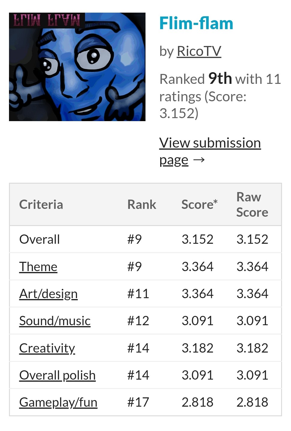 Voted 9th out of 32 eligible entries